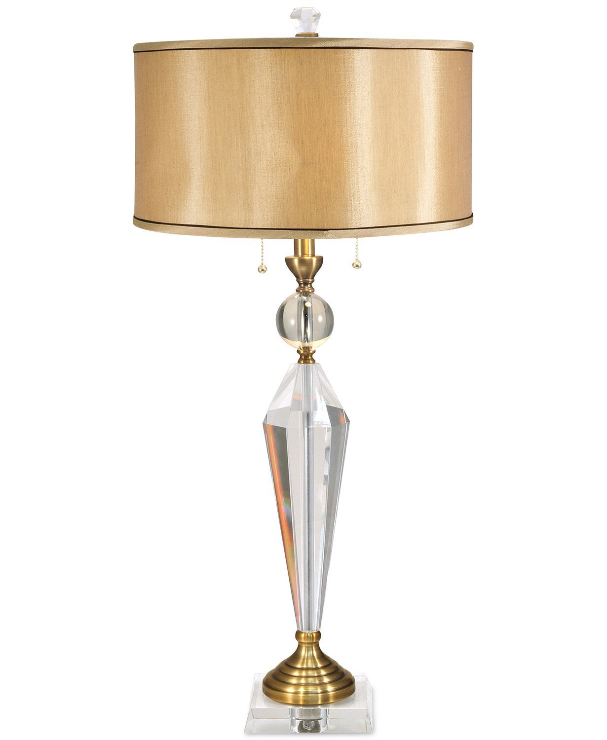 Bring a touch of glam to your space with the enchanting Strada Crystal table lamp from Dale Tiffany. The hand-cut, tapered crystal base has antique brass-tone details and a shimmering shade with accent trim that turns heads from across the room.